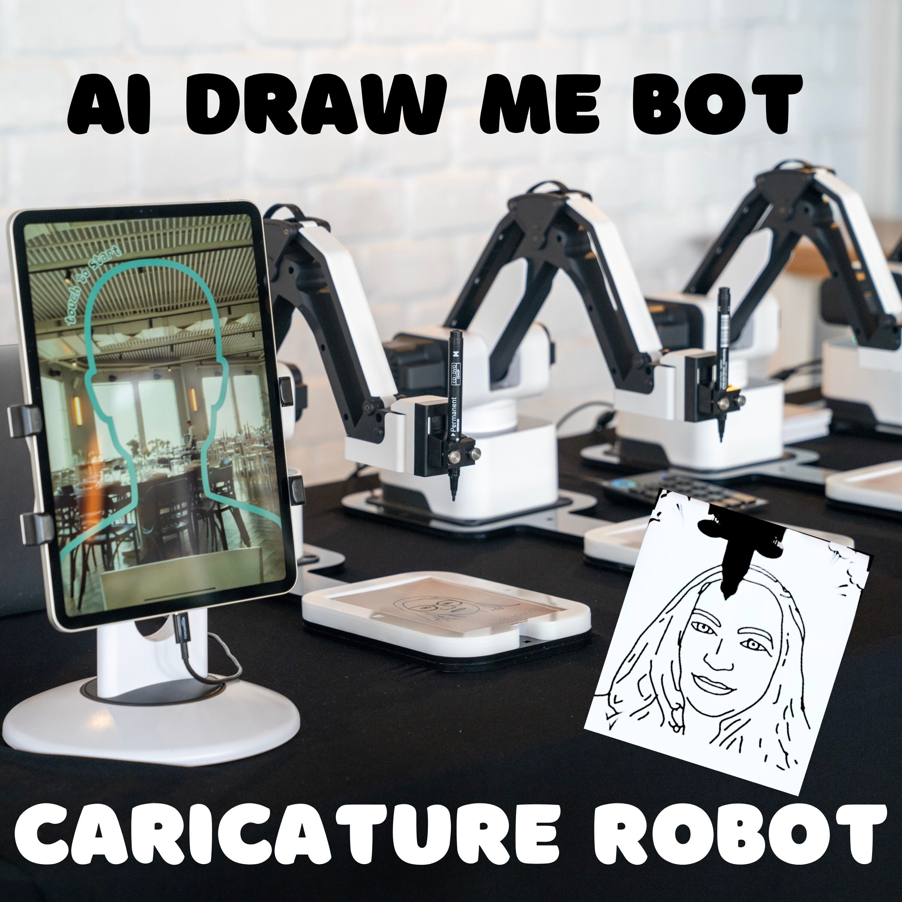 Ideal for expos, product launches, and influencer activations, this draw me bot rental helps your event stand out visually and digitally.