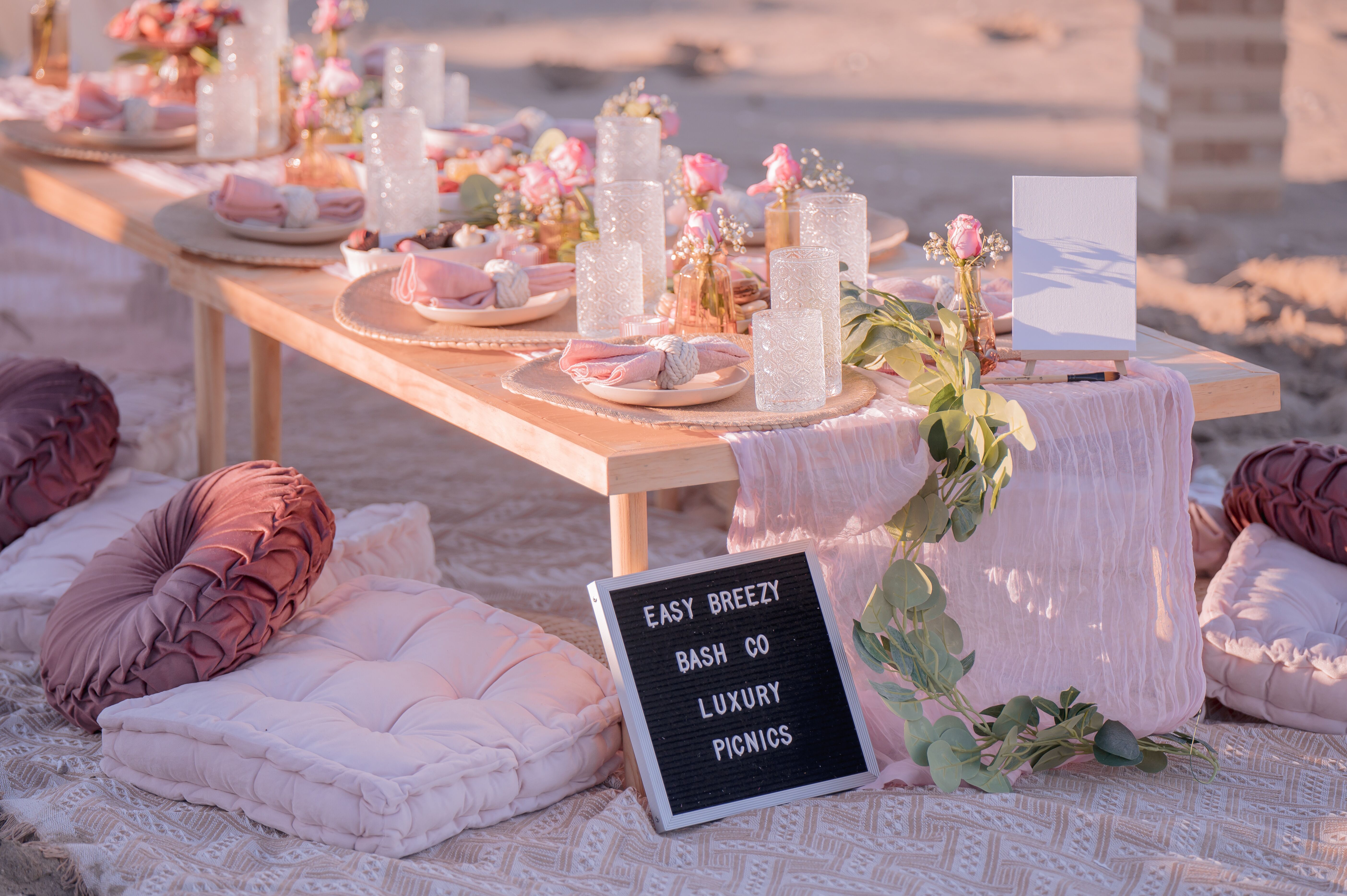 Let Easy Breezy Bash Co. design a beautiful luxury picnic experience that blends comfort, style, and unforgettable moments—perfectly curated for your next celebration.