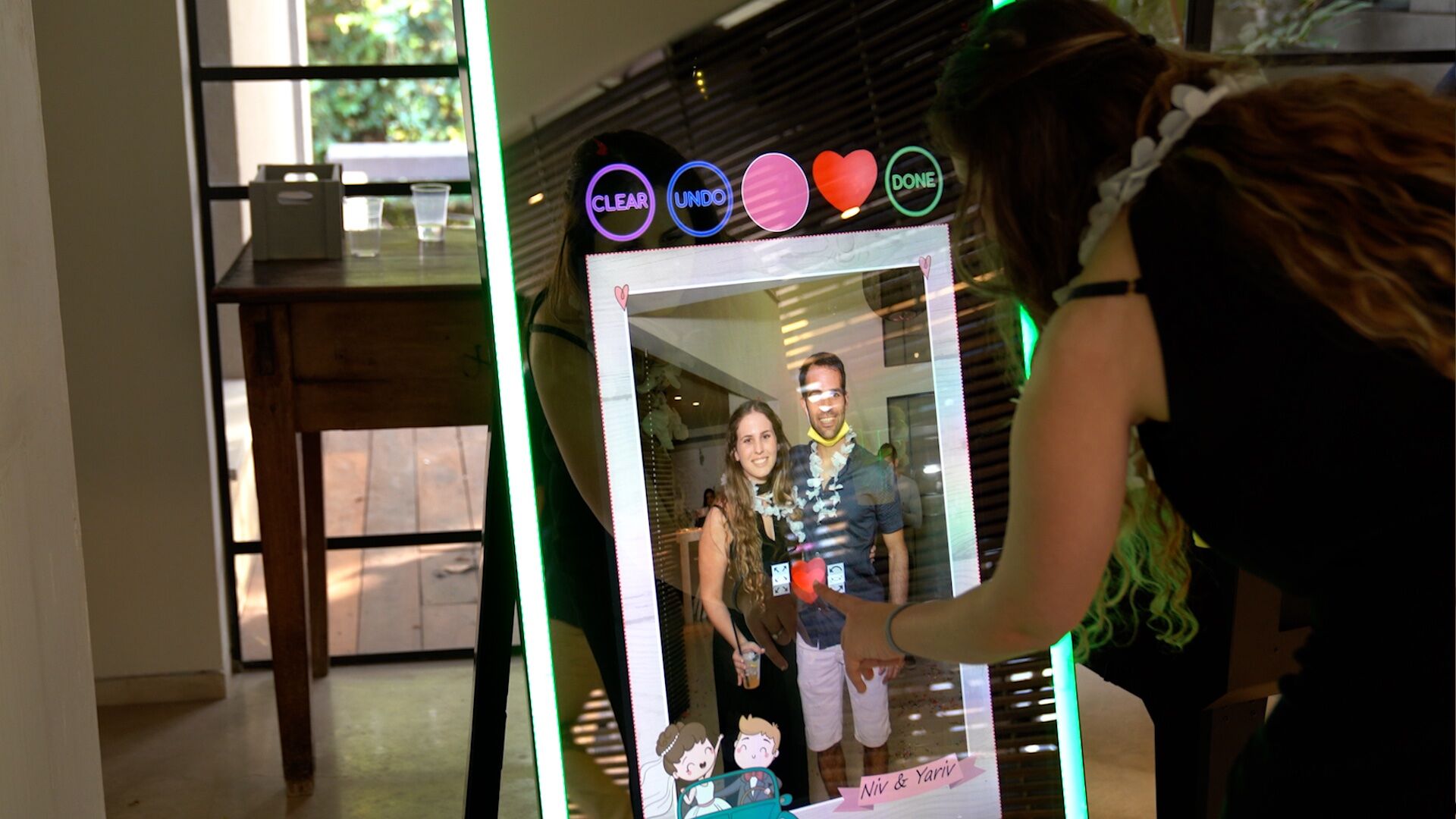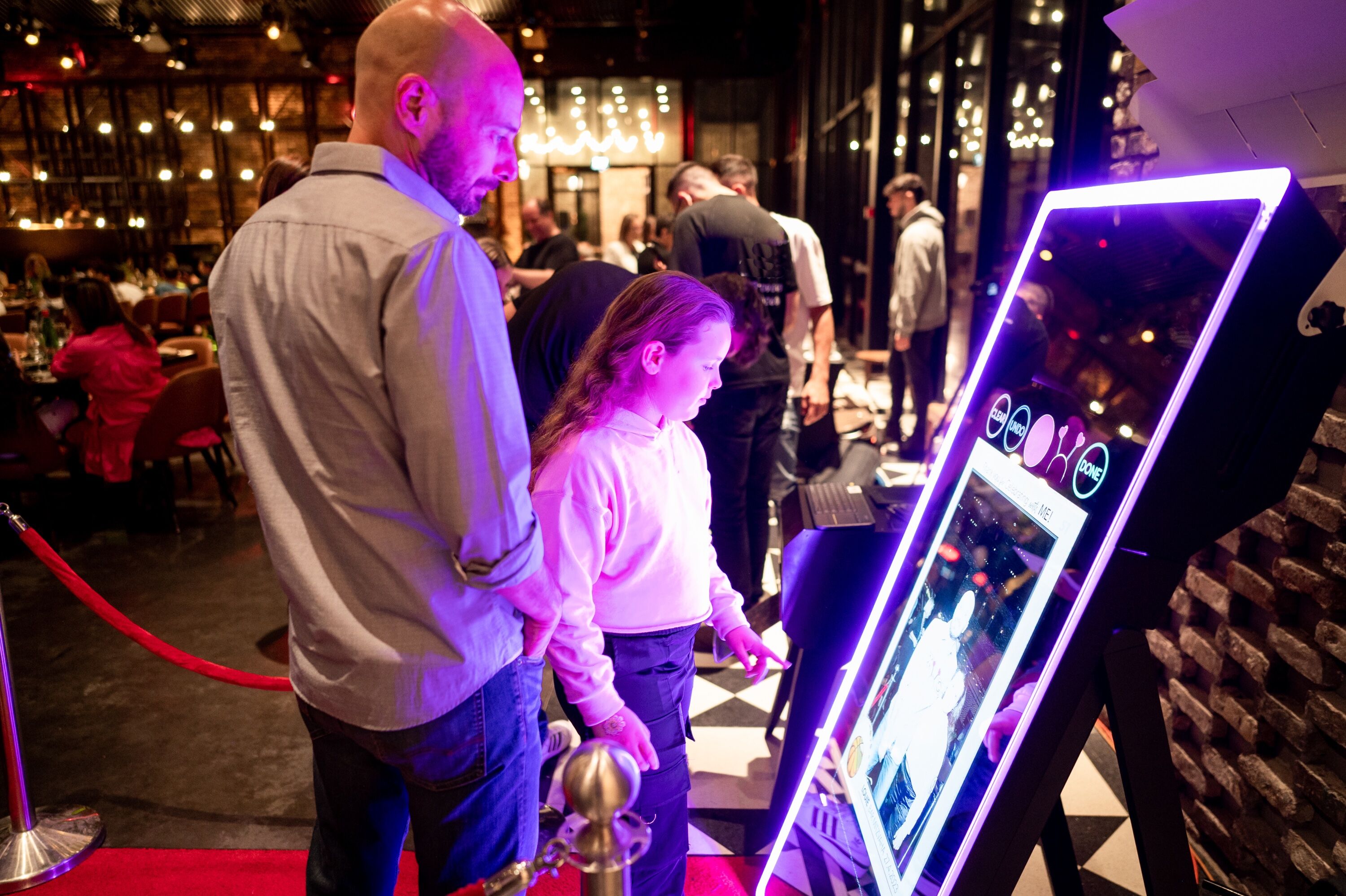 This photobooth goes beyond simple photos. Guests can sign their images, draw on the screen, and interact with animated prompts that make the experience fun for all ages.
