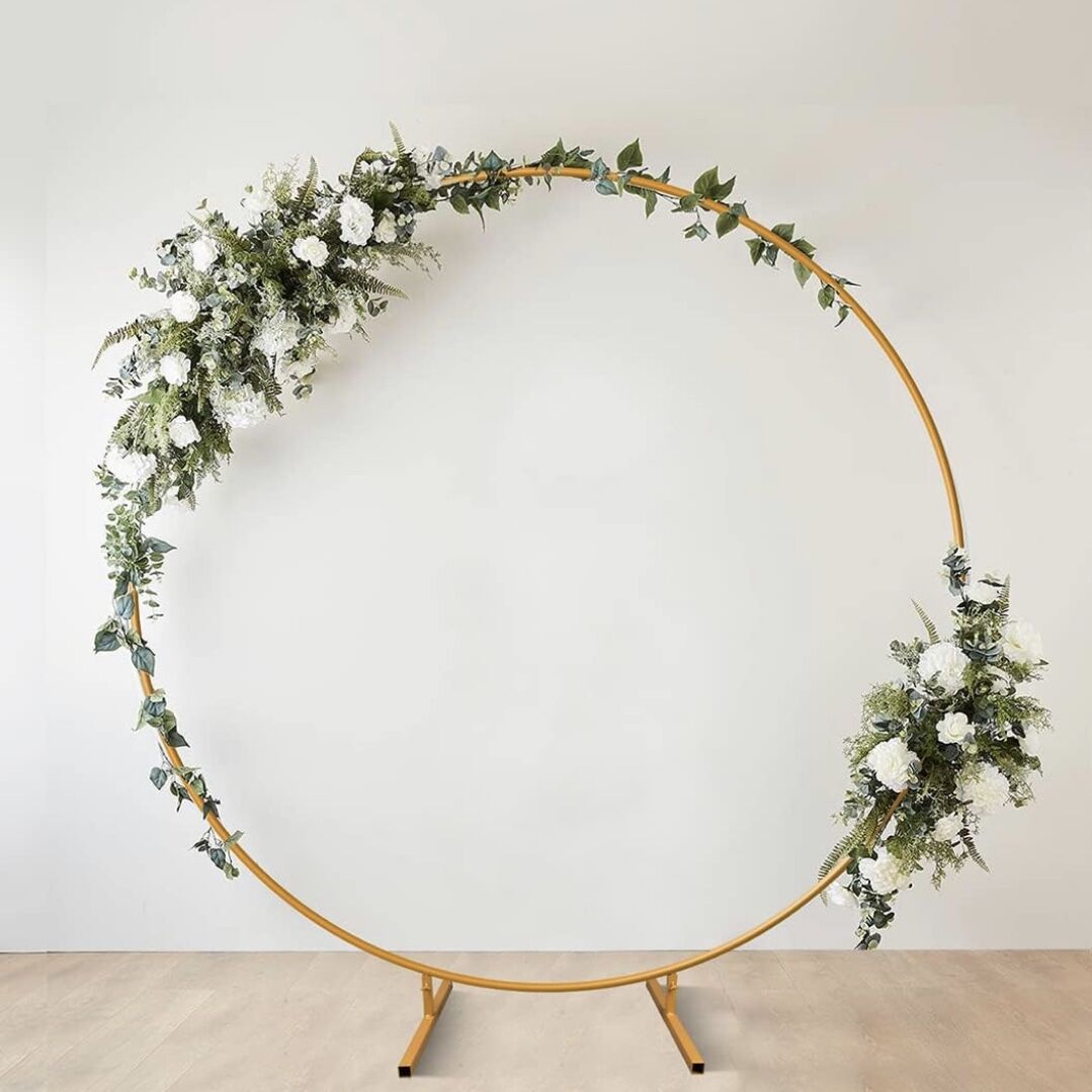 The round arch design is both modern and classic, offering a minimalist shape that can be dressed up to match any theme. Whether you want a rustic wedding arch with greenery and pampas grass, a chic white floral setup for a bridal shower, or a whimsical arch with pastel balloons for a baby shower, this piece adapts beautifully to your vision.